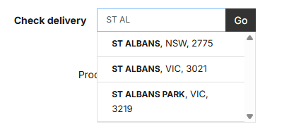 You must enter the spelling of the suburb the same way as presented in the shipping calculator or when you set your location at the top of the website.